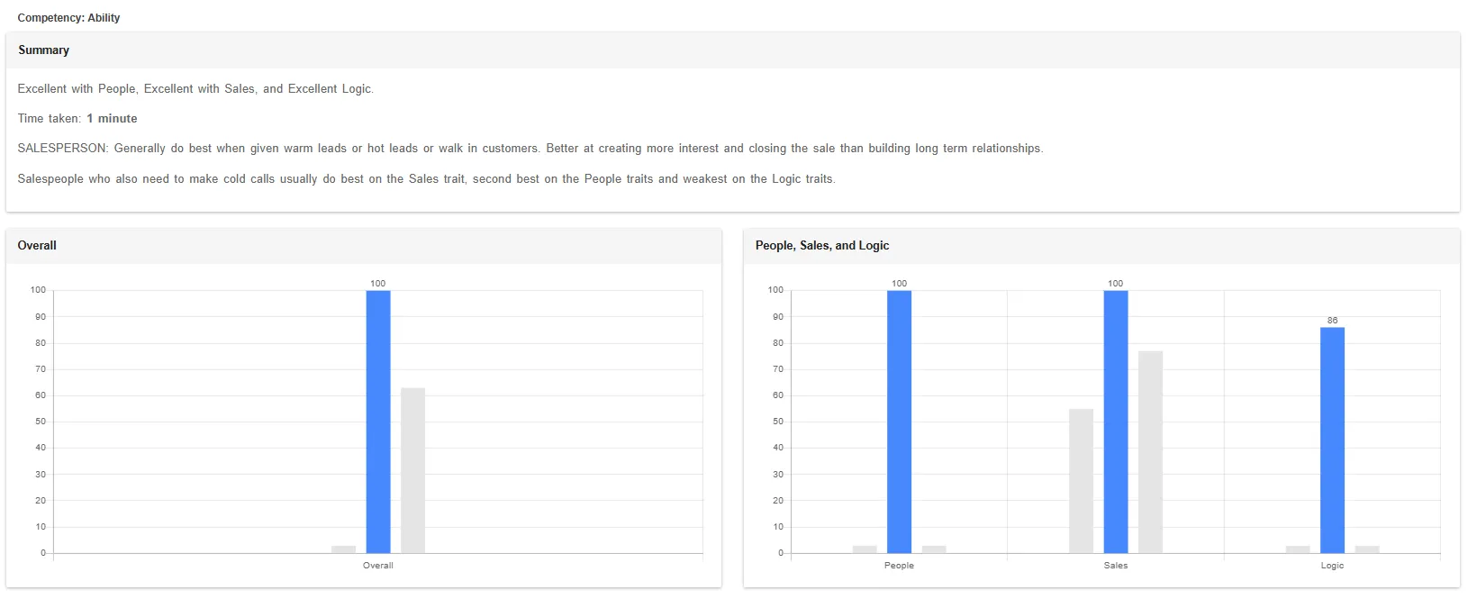 Receive a detailed report showing sales skills, people skills, and logic strengths.