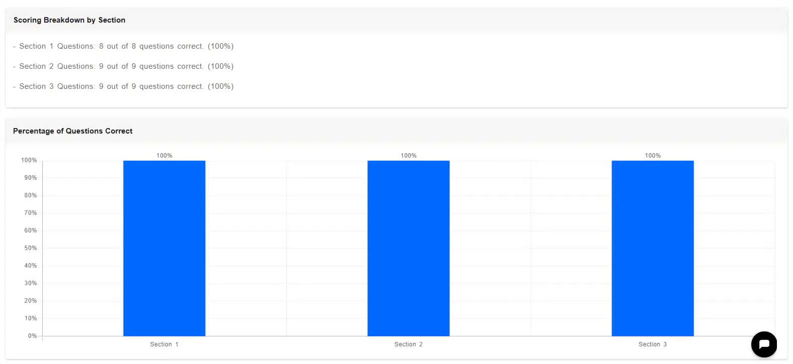 - Section 3: 9/9 (100%)